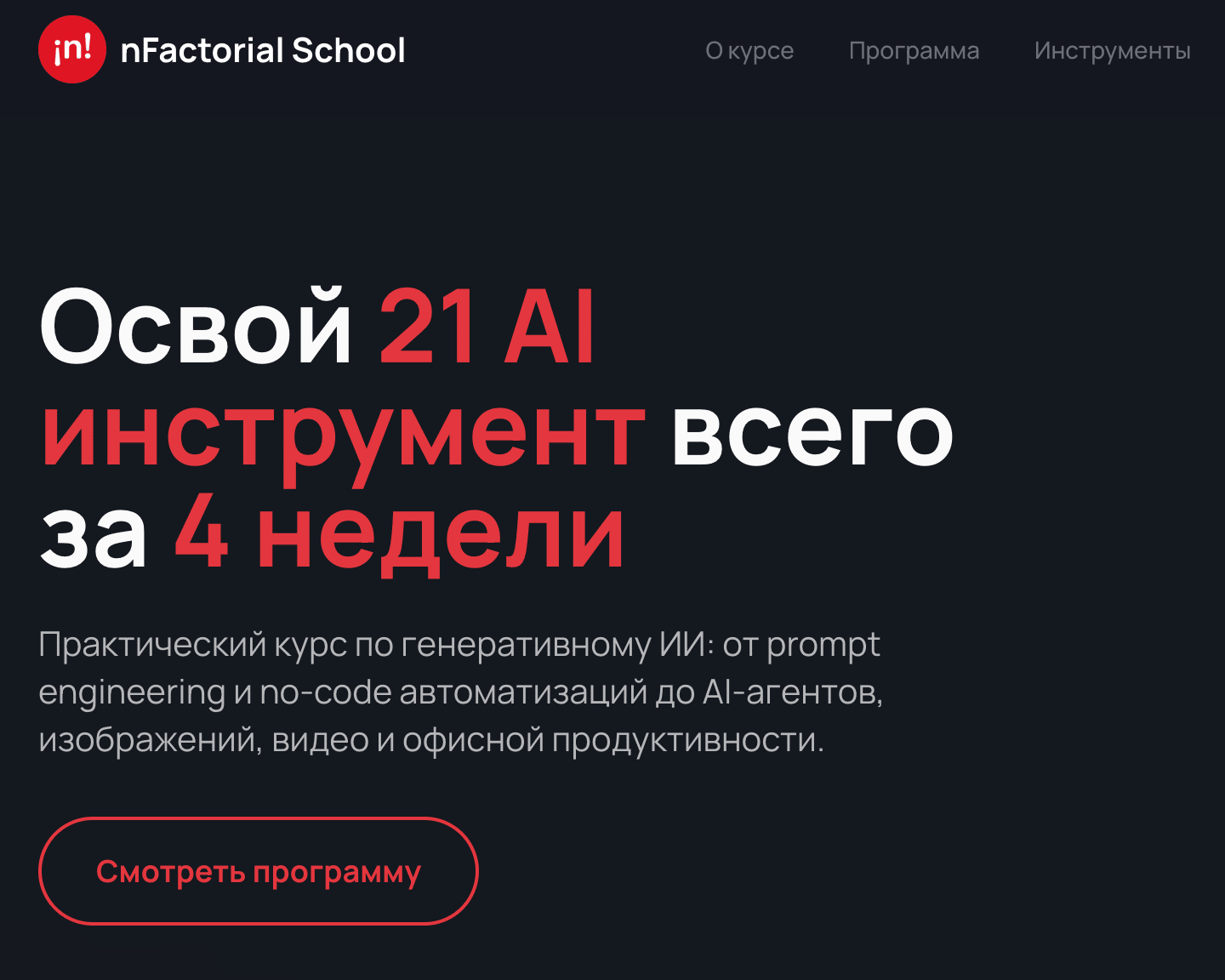 Практический курс по генеративному ИИ: от prompt engineering и no-code автоматизаций до AI-агентов, изображений, видео и офисной продуктивности. Инструменты, с которыми вы будете работать: ChatGPT, Gemini, Perplexity, Make, Zapier, n8n, AgentKit, Midjourney, DALL-E 3, Stable Diffusion, Recraft, Pixverse, Veo 3, Higgsfield, Suno, ElevenLabs, silero, heygen, Gamma, Notion AI, Comet.